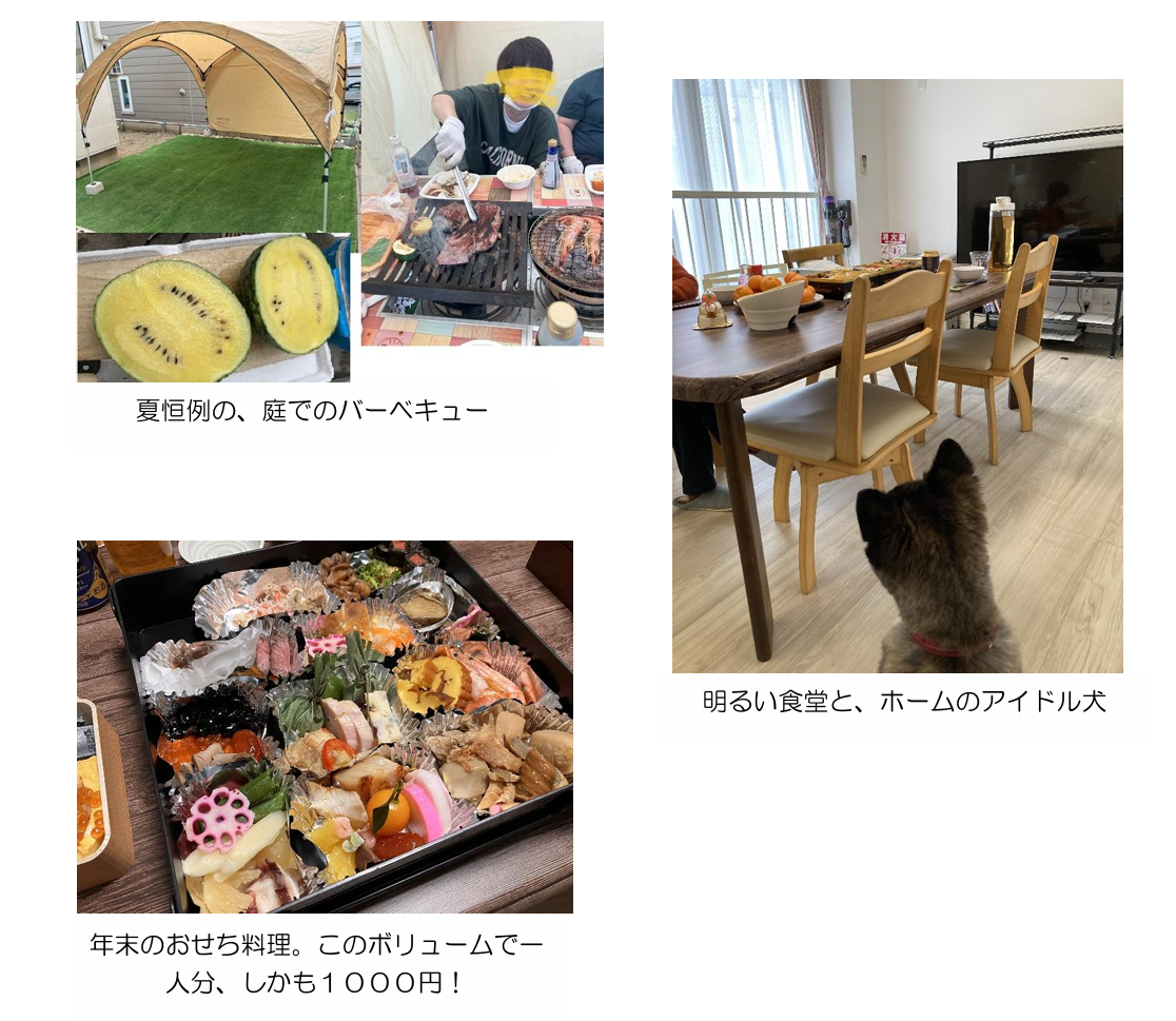 〇レクレーションを、随時行っています。特に、庭で年数回行うバーべキューは、入居者の方に好評です。